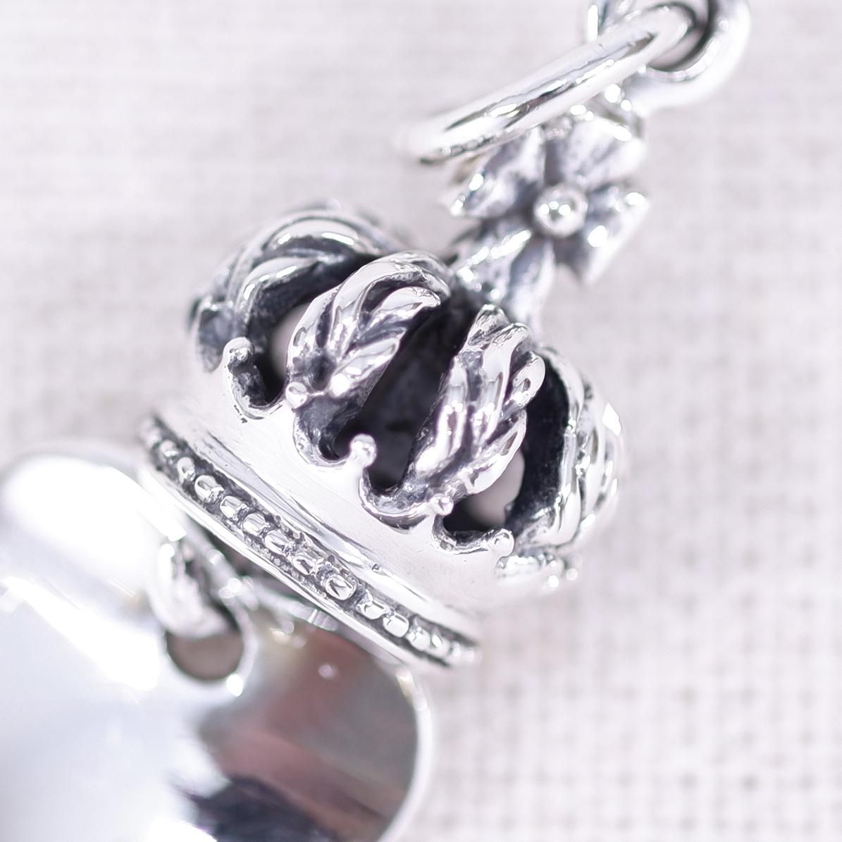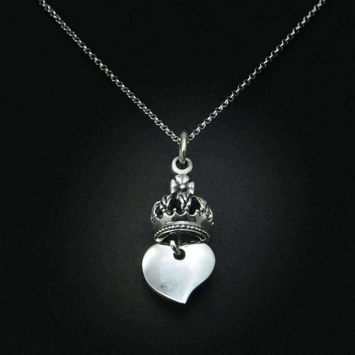 ゴシック調デザインの王冠とハートがモチーフのペンダントトップ。ハート部はゆらゆら揺れて光を反射させ輝きます。