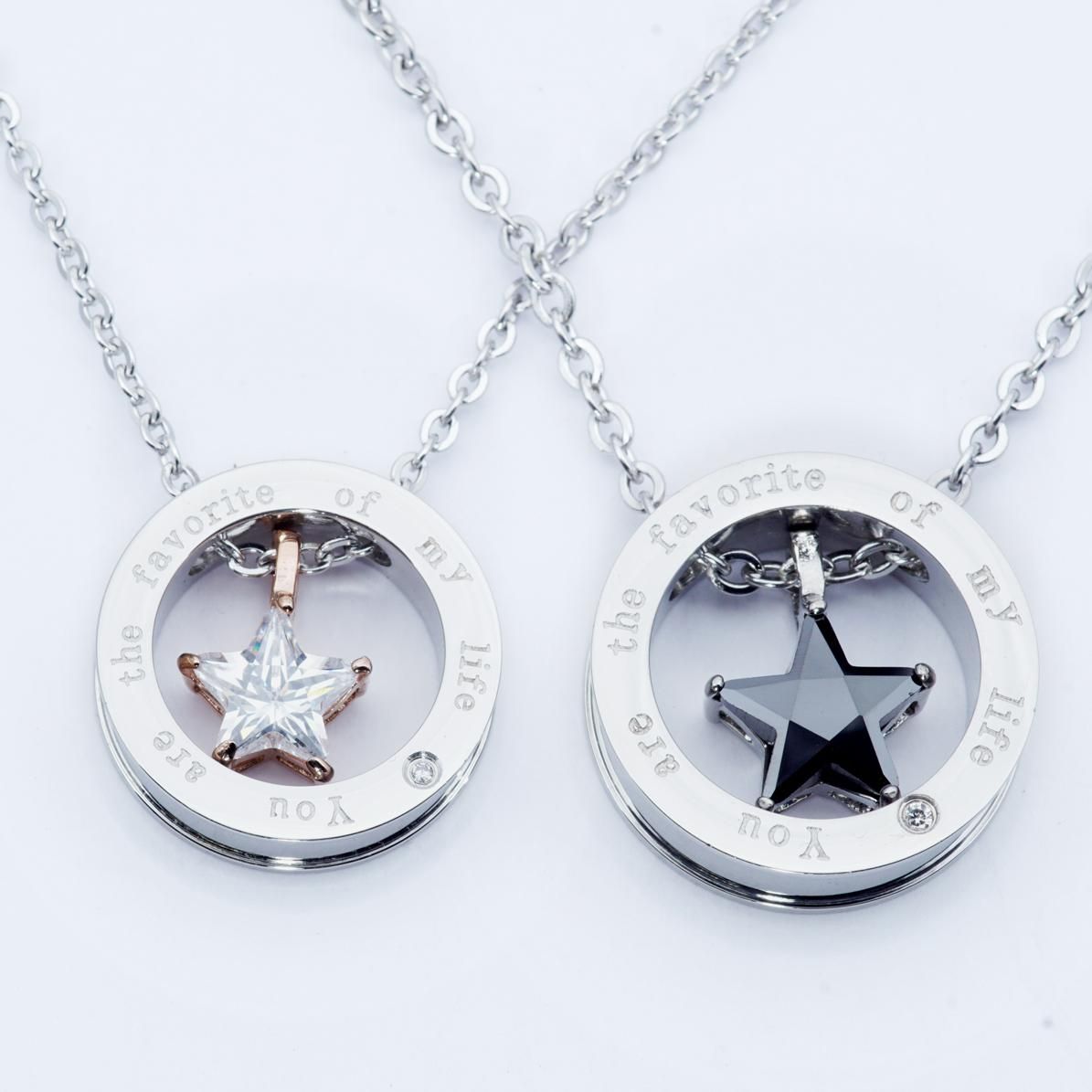 素材違いの星が揺れ輝く存在感のあるペアペンダント。