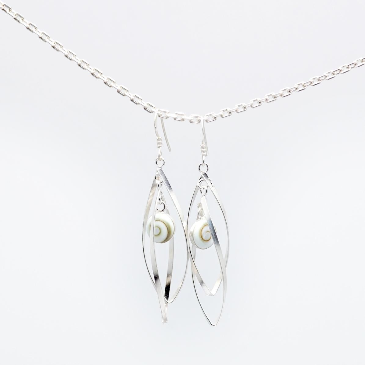 繊細でシャープなデザインが揺れ動く。美しいハンドメイドピアス。一点物。