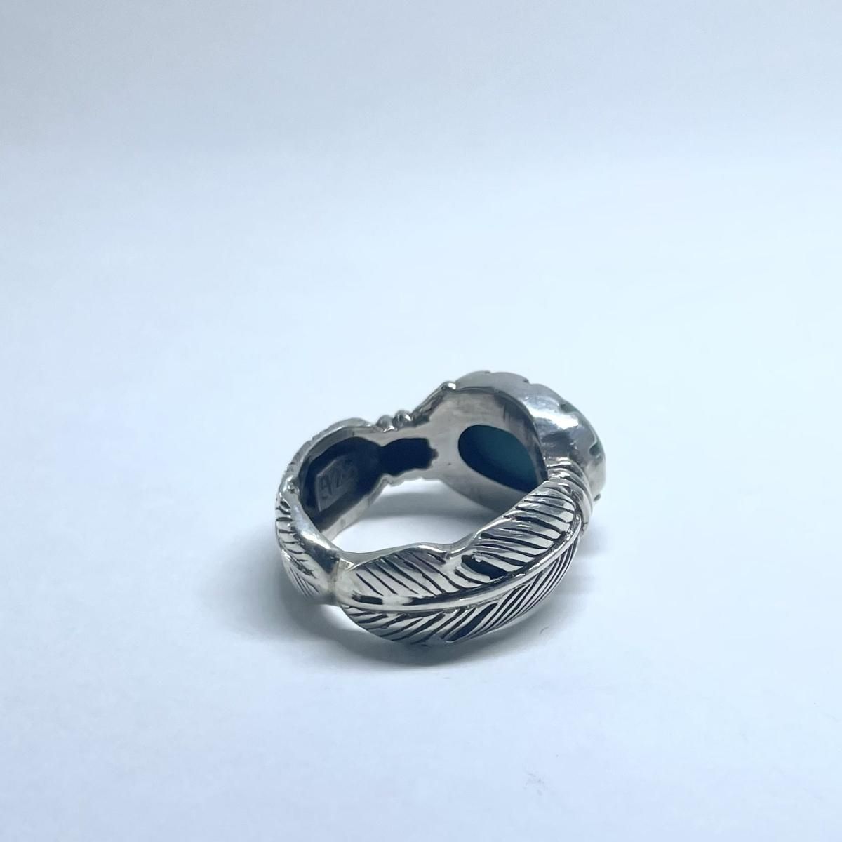 良質なターコイズを中央にあしらえつつ、リング自体も丸み・ボリュームを持たせた存在感のある一品